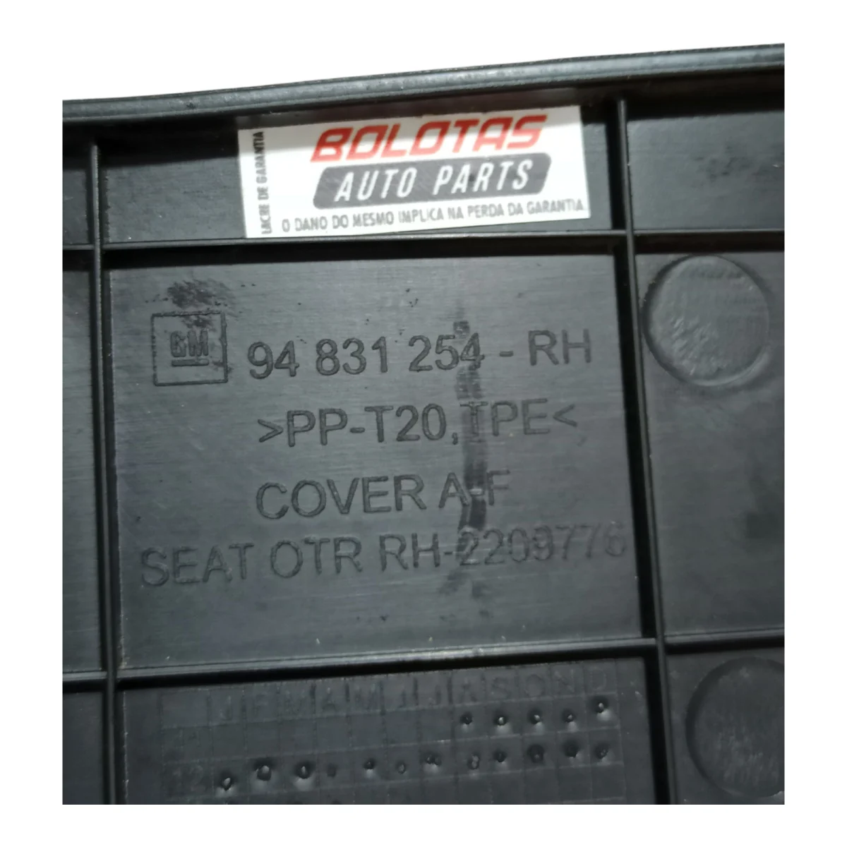 | Código OEM | Moldura do banco do passageiro, fica do lado direito do mesmo. Capa Plástica Banco, Moldura Lateral Assento, Acabamento Interno Cruze, Lado Passageiro, 94831254, Peça Original GM, Capa Reclinador Direita |