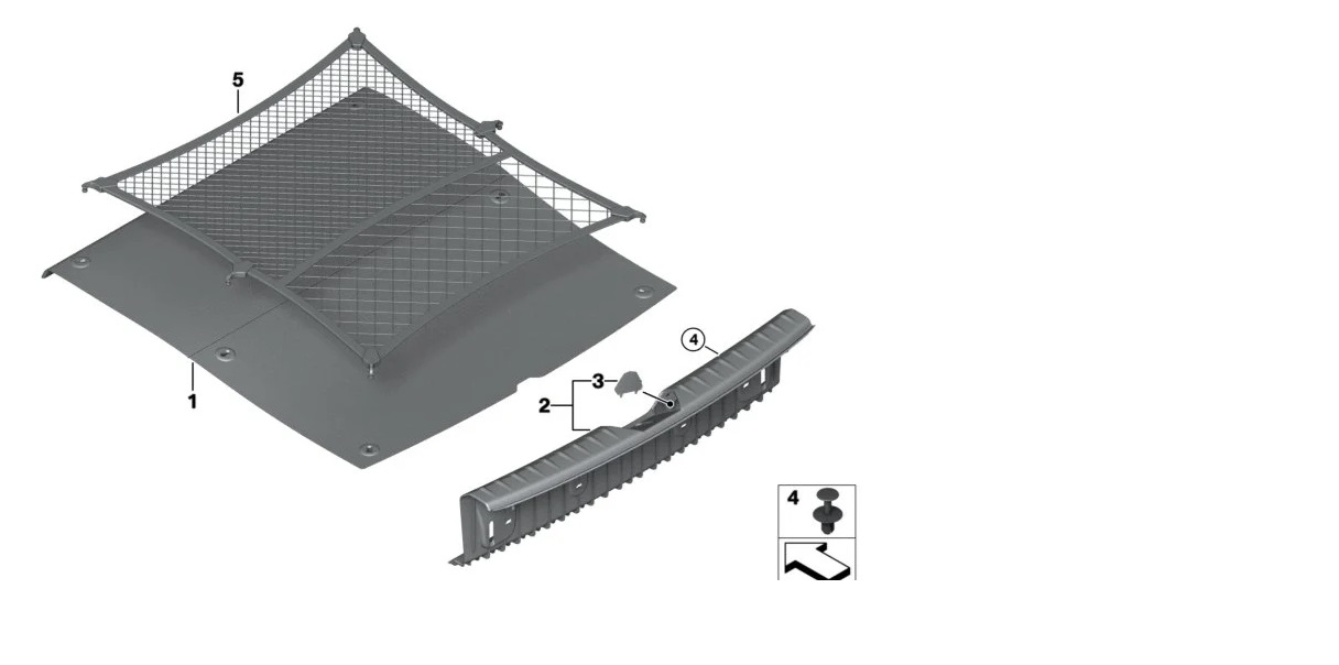 7286004, 15054410, 30H817004, tampa acabamento soleira bmw, cobertura fechadura porta malas bmw, acabamento traseiro bmw f20, 51477286004, capa batente porta malas bmw, peca bmw original usada