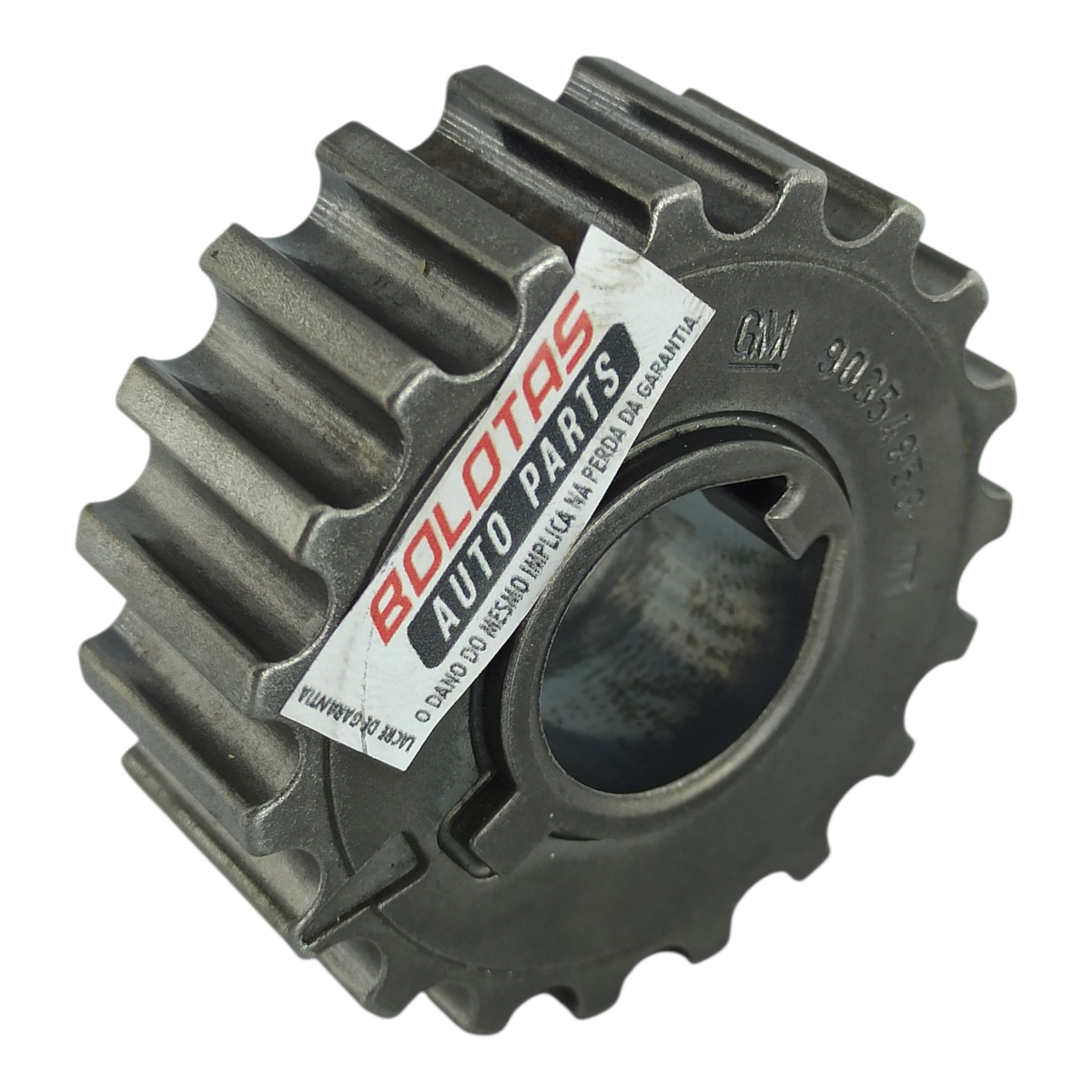 A engrenagem do virabrequim é uma peça usada e original Chevrolet.