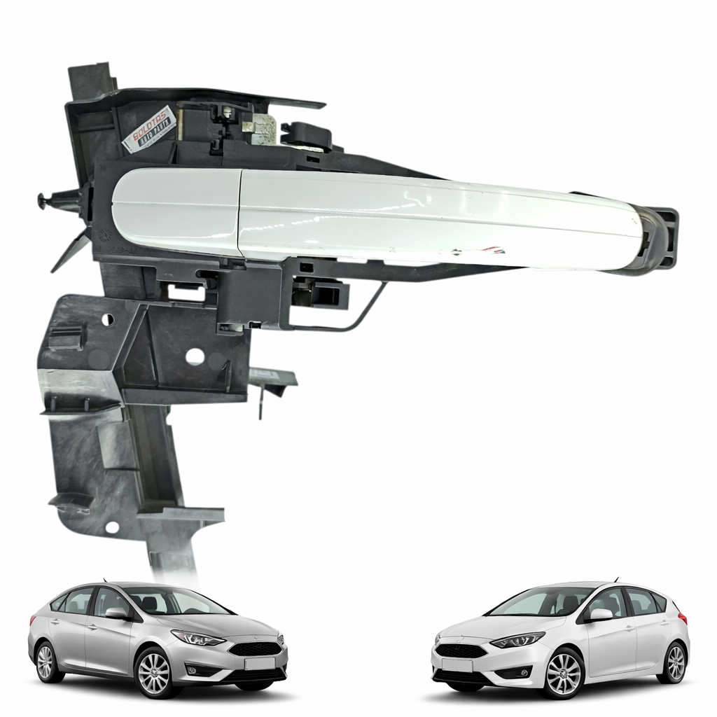 Puxador de porta, maçaneta externa dianteira, Focus MK3, Focus MK3.5, Ford Genuíno, BM51A224A36CJ, peça original Ford, maçaneta prata, acabamento externo